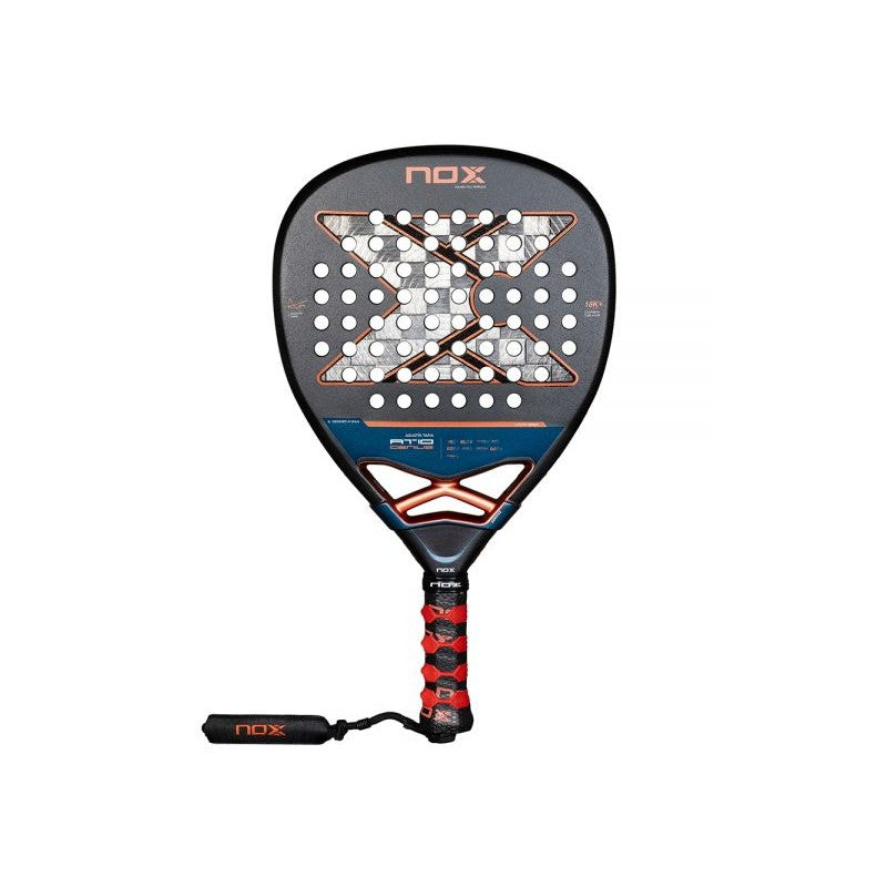 Pensada para jugadores experimentados que buscan un juego ofensivo, la Nox AT10 Genius Attack 18K Alum es ideal para aquellos que disfrutan del ataque en la pista. Su estructura en diamante permite generar golpes potentes y precisos, mientras que el núcleo MLD Black EVA optimiza la salida de bola y asegura un excelente rendimiento tanto en golpes suaves como en remates. Los jugadores que buscan un grip más largo también se beneficiarán del Oversize Grip, que mejora el control y comodidad.